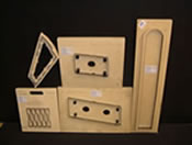 Our cutting dies for this sector use 18 mm plywood and 4 point * 40 mm cut rule. What makes our tools different is the collar on every tool which makes the exact location on the door panel easy and exact.